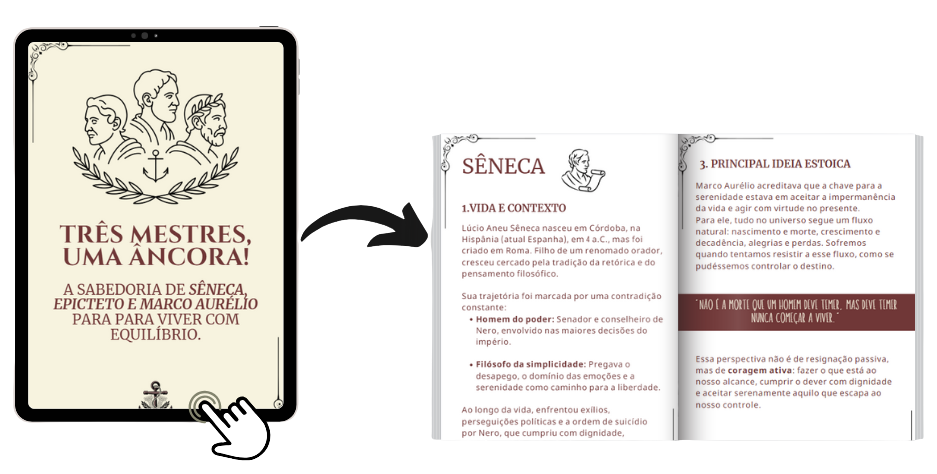 Receber 3 bônus exclusivos: Caderno de Bordo Estoico, Checklist de Emergência e Cartões Estoicos de Bolso.